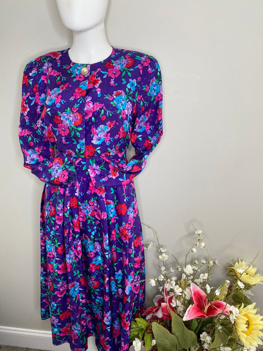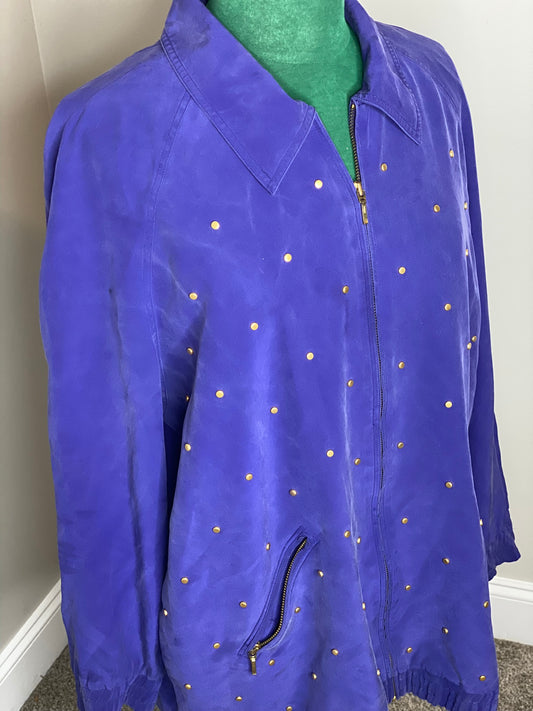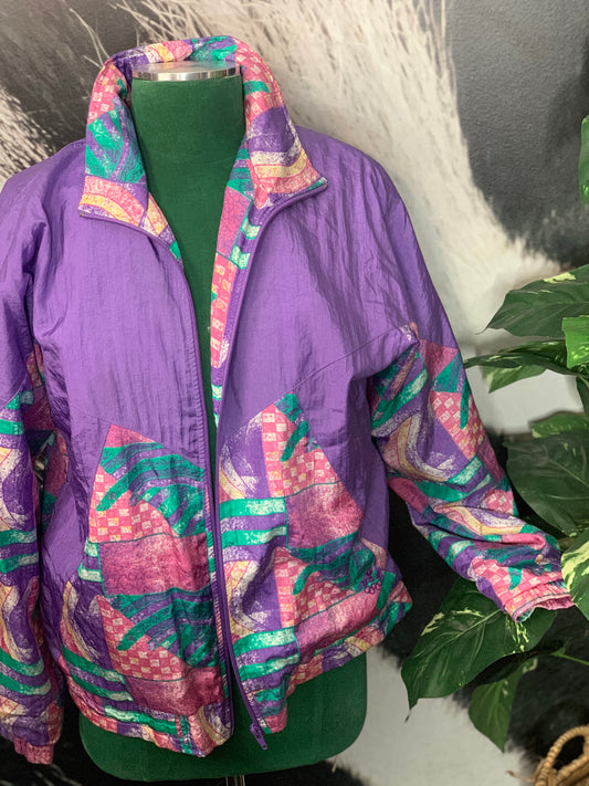 Vntg. Multicolor & Floral Silk Bomber Jacket