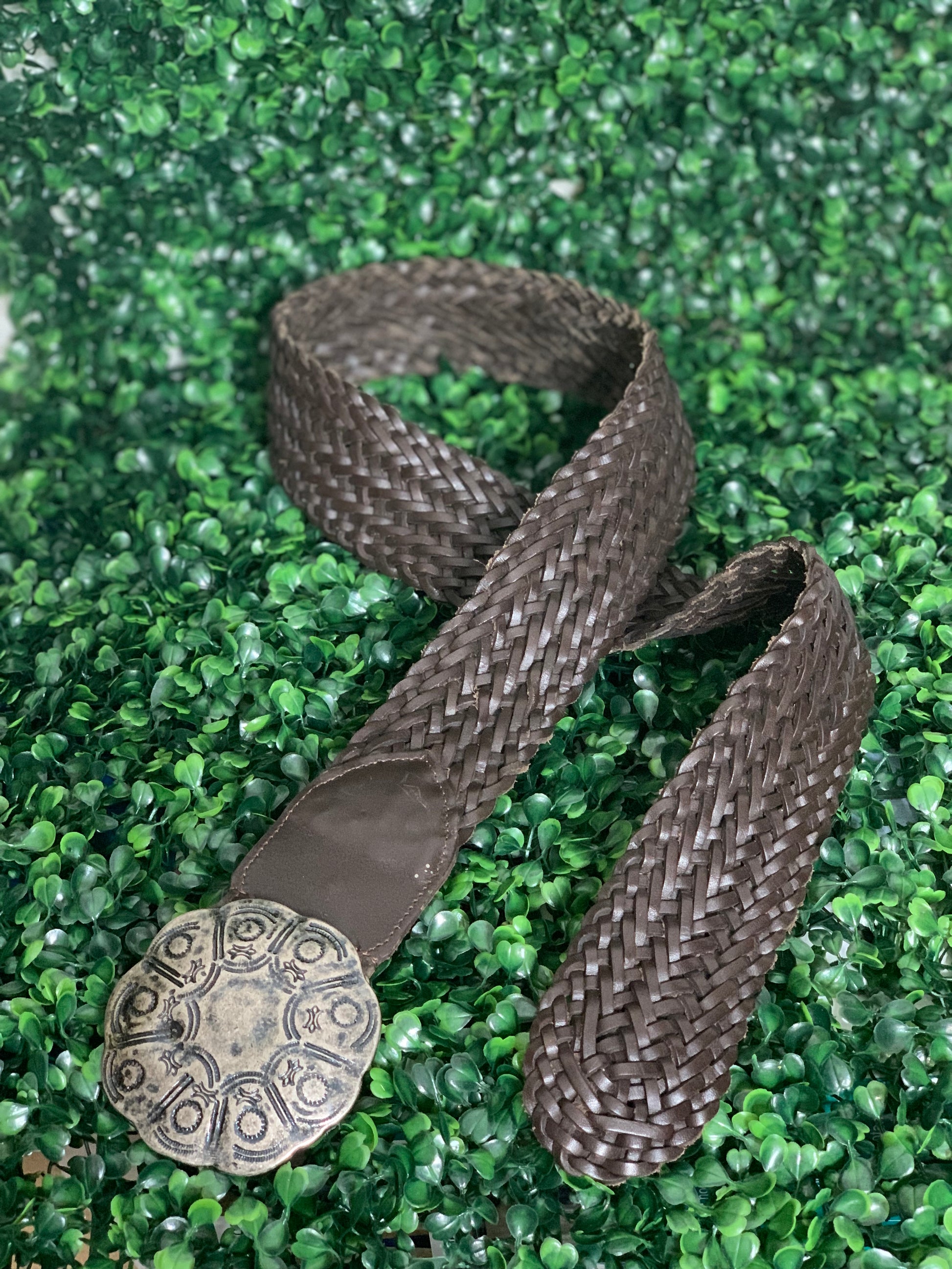 Brown Abercrombie & Fitch leather belt with oversize buckle.