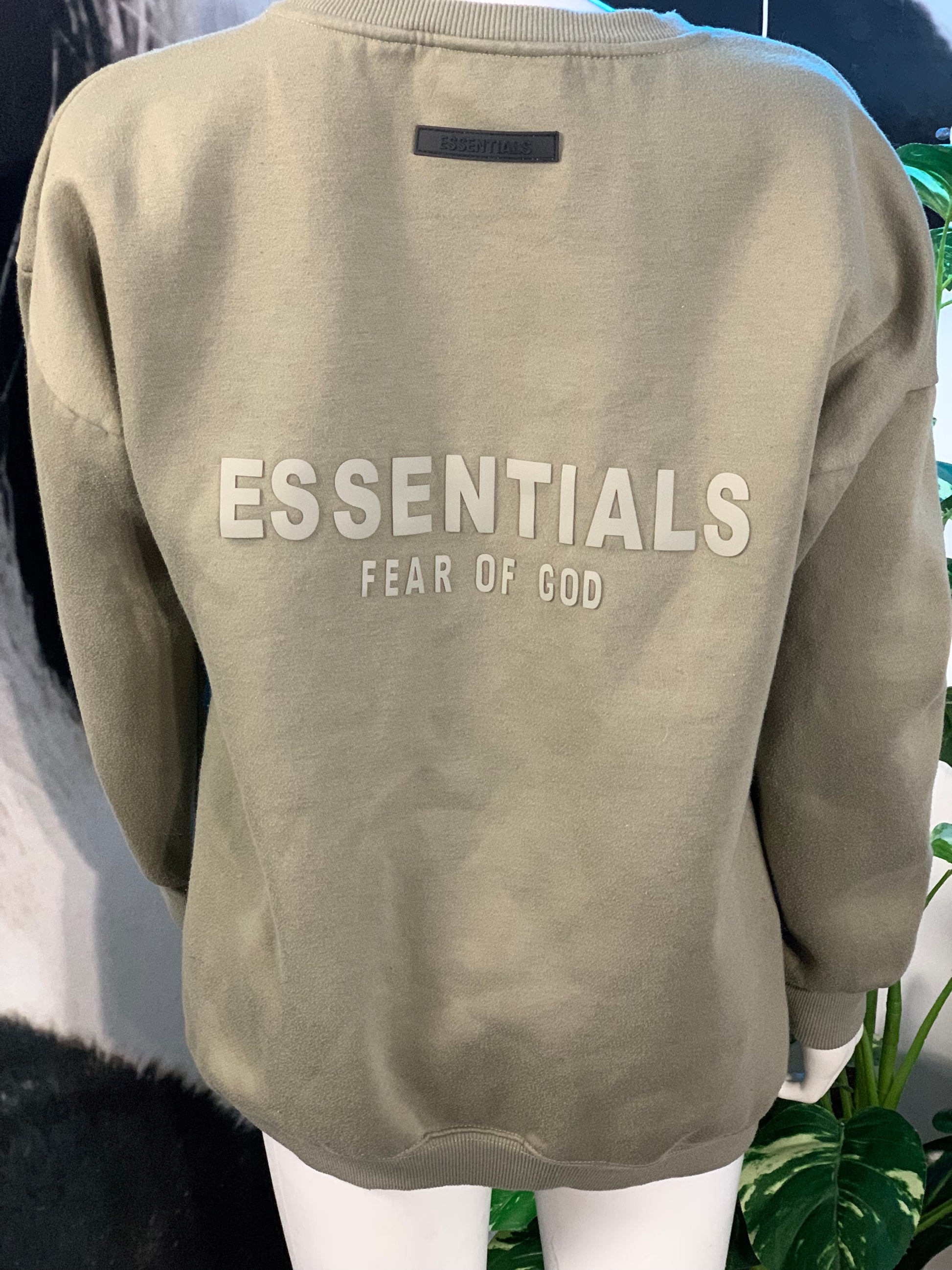 Fear of God ESSENTIALS Classic Fit Fleece Crew Neck Sweatshirt. SAGE Green in color. %100 cotton