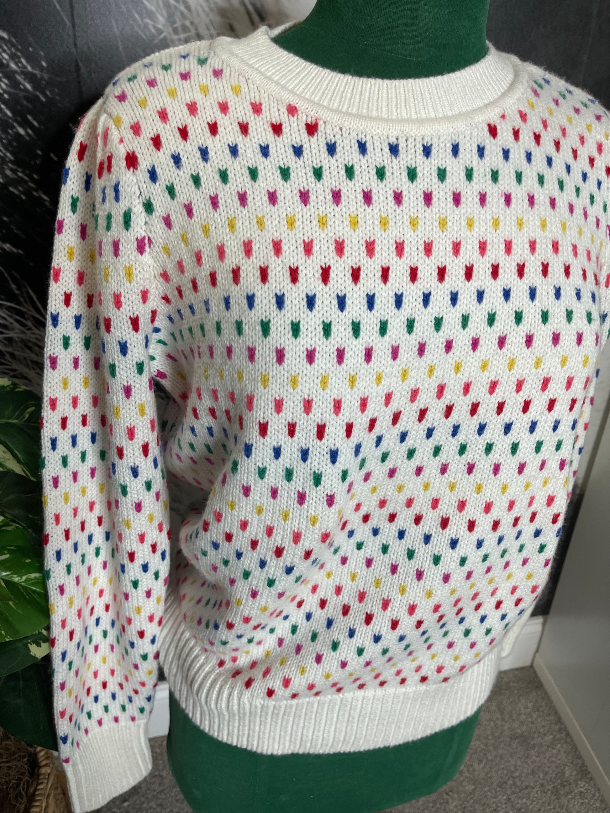 NWT. Talbots puff sleeve, pull over, crew neck sweater. Has multi color detail.