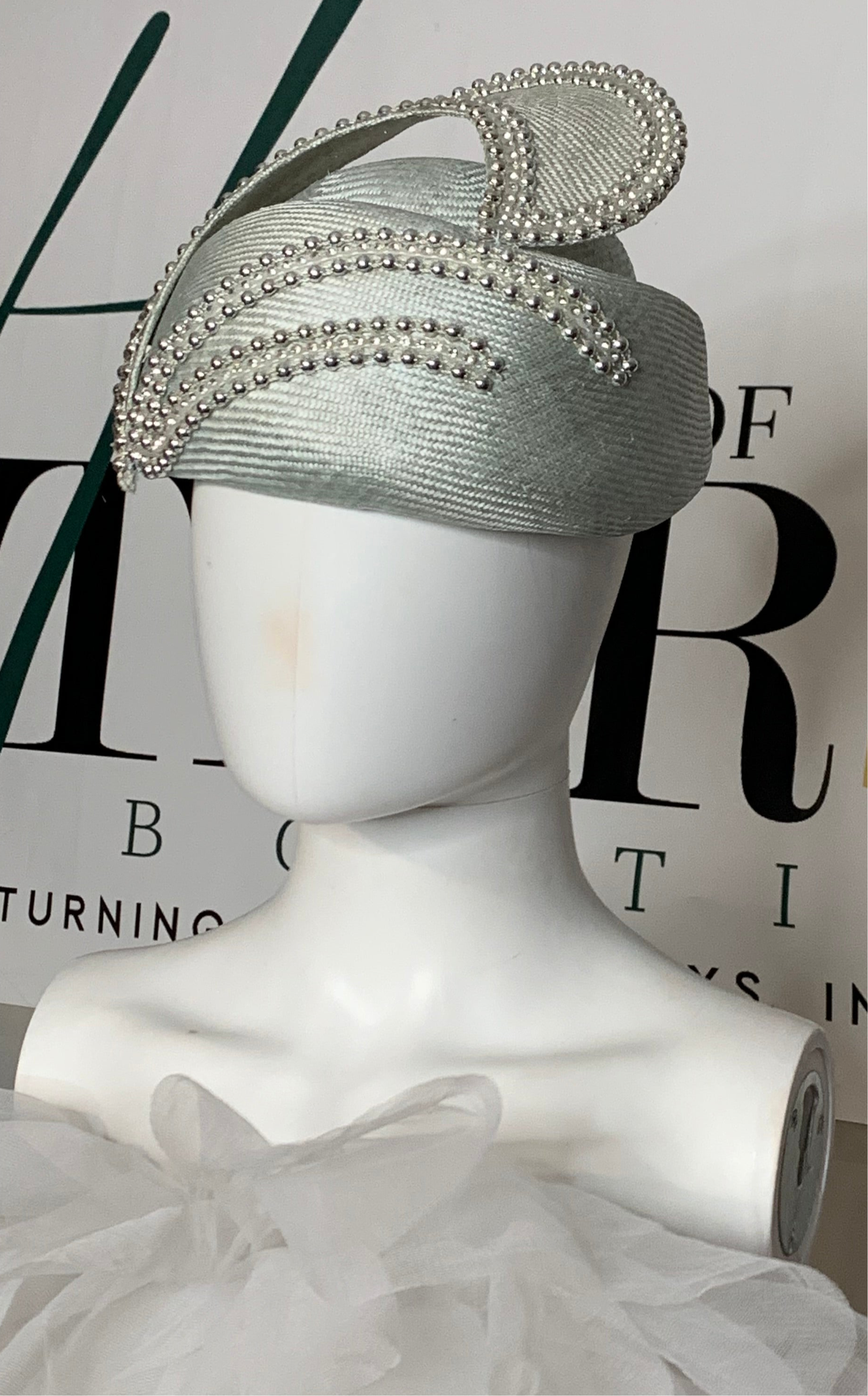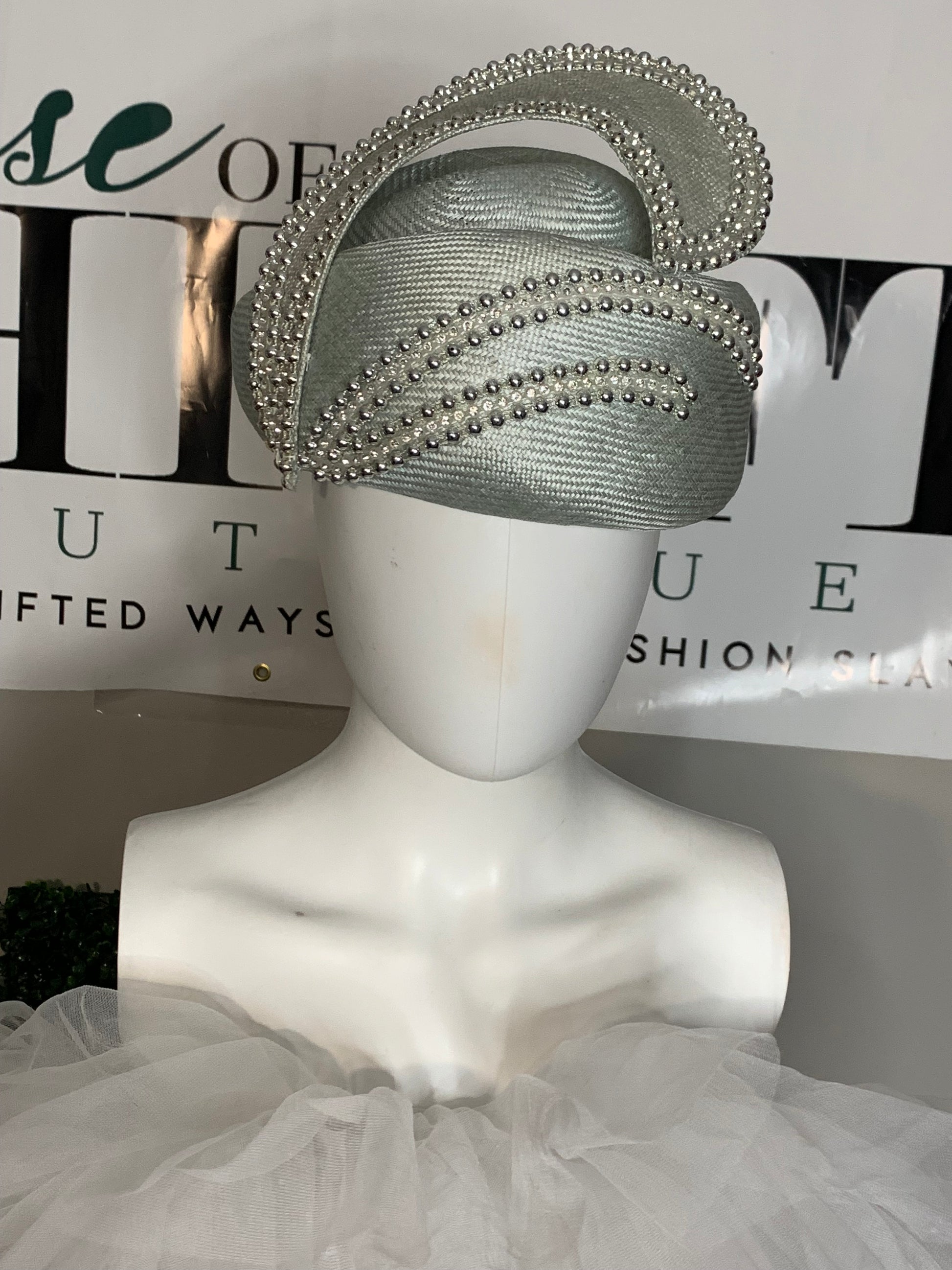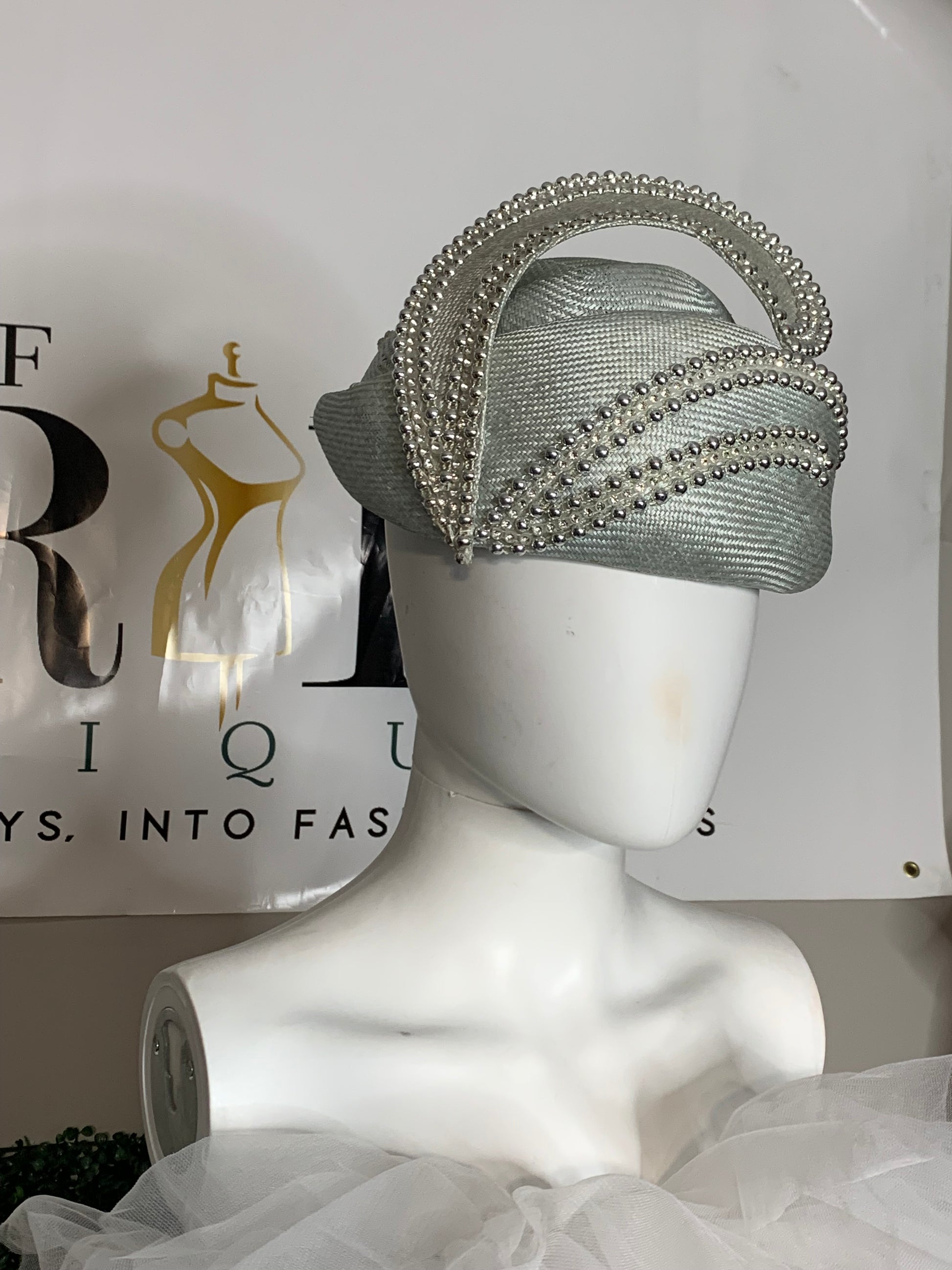 Vintage Jack Mconnell denim dye church hat. Silver covered detail trim with bling.