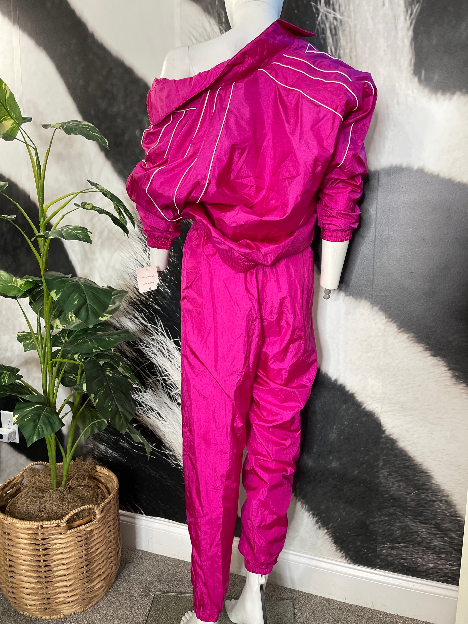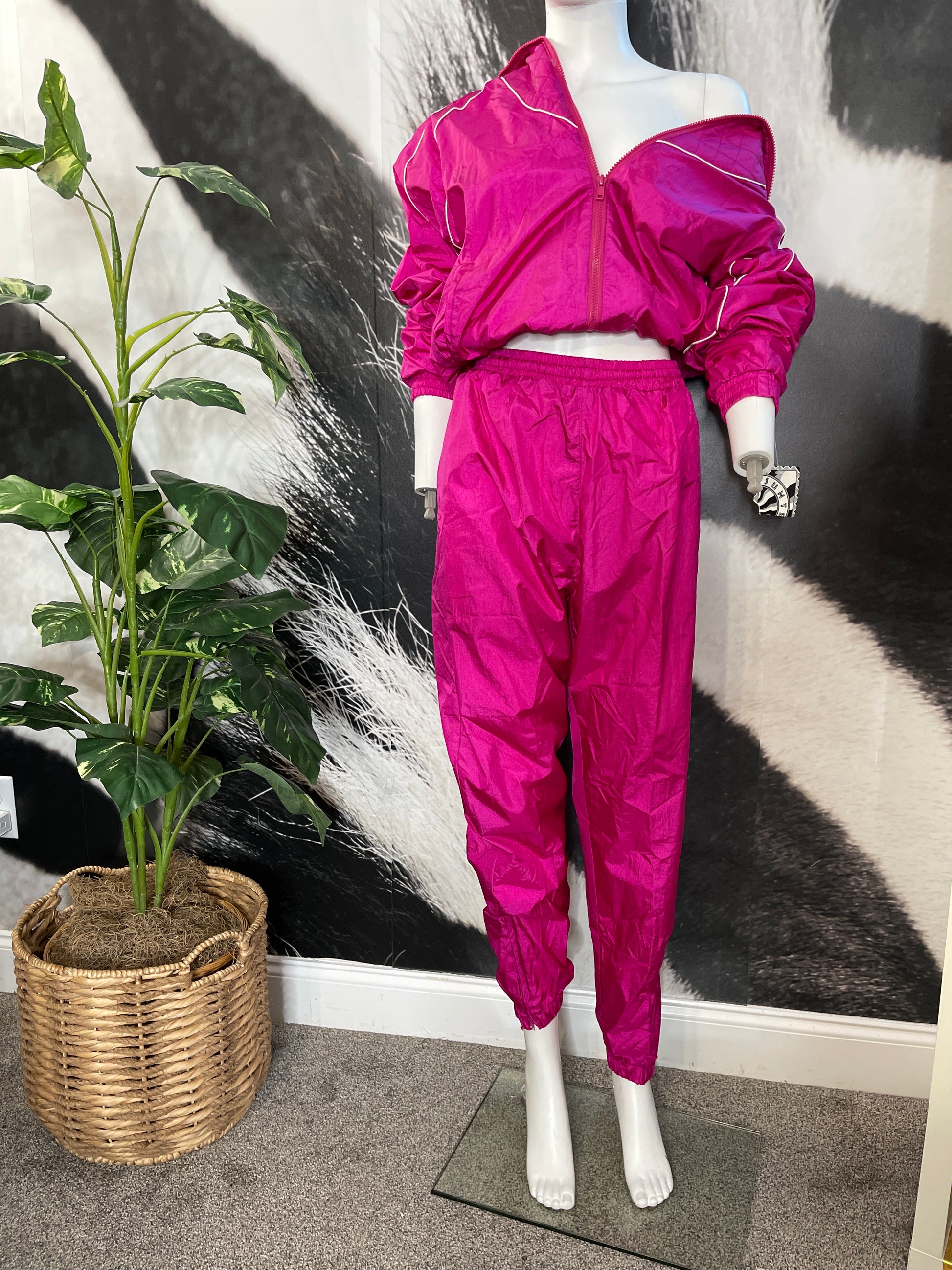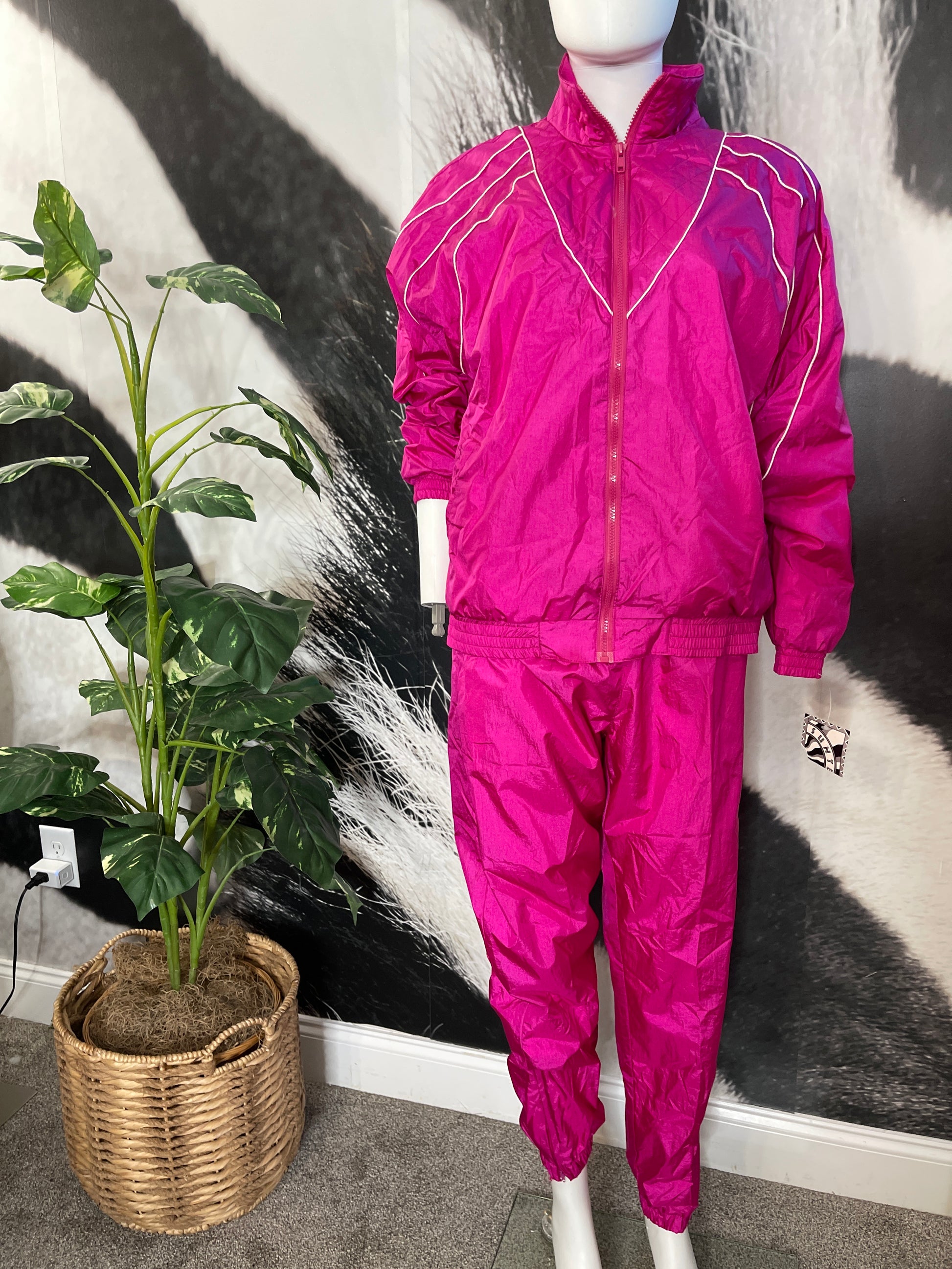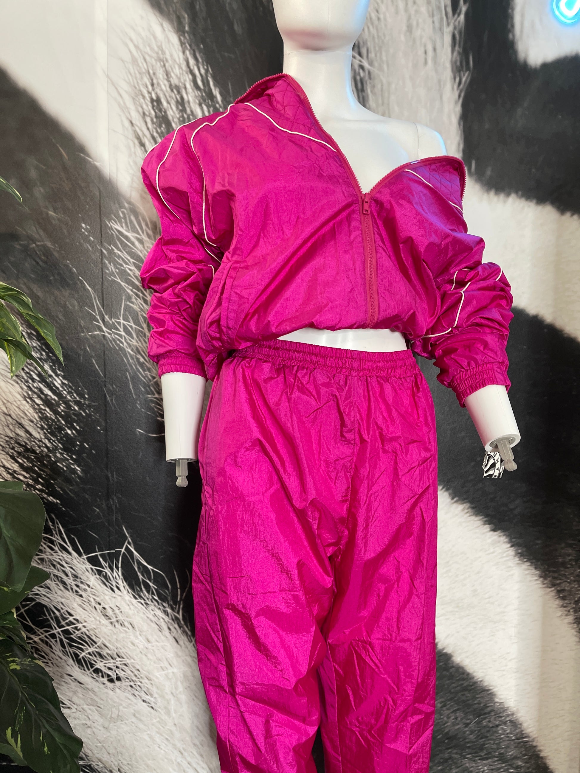 By: SunTerra. In vibrate Fuchsia color with white piping trim, 2pc pant set. White lining inside.