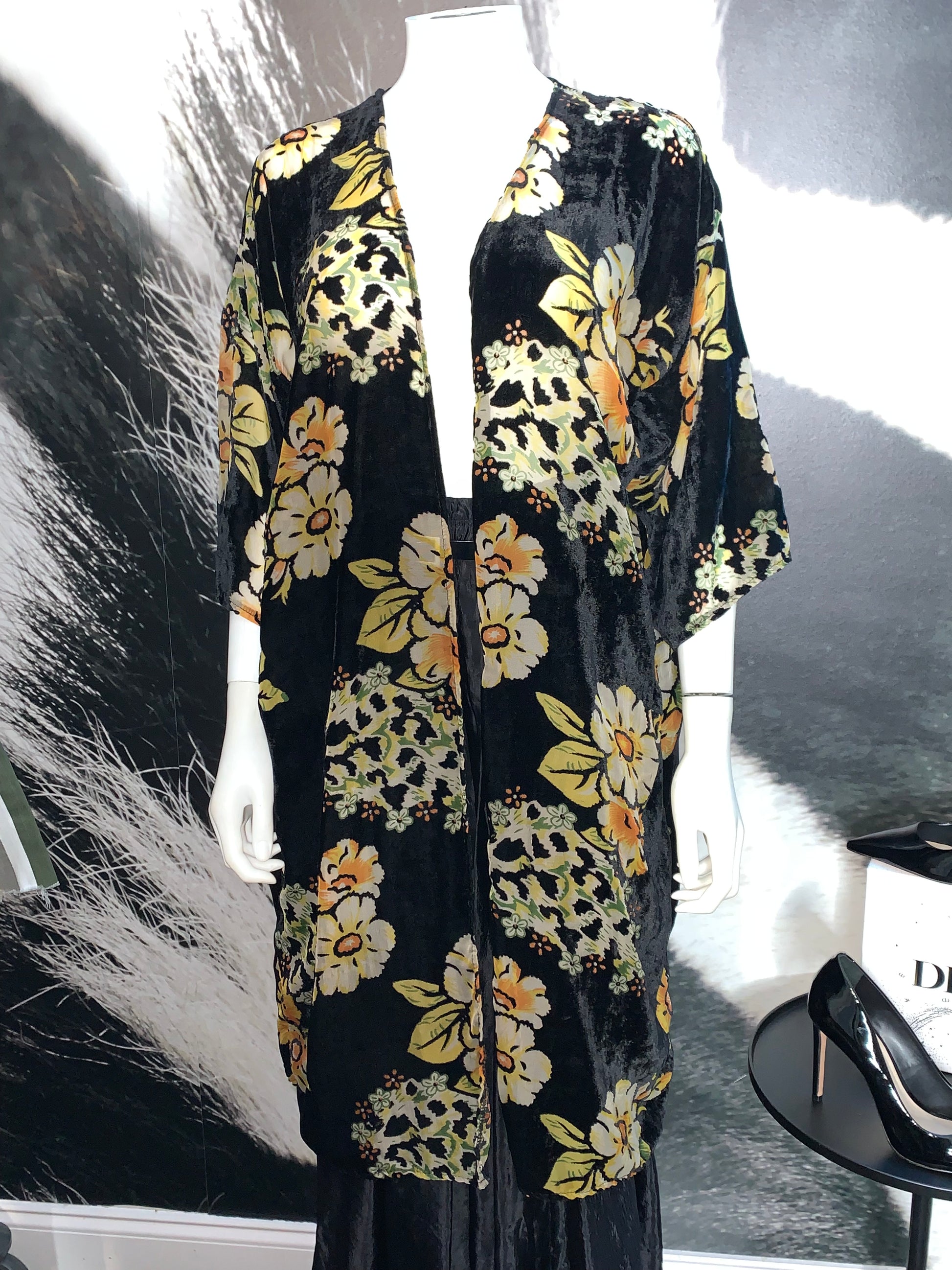 BRAND: Woven Heart Velvet Open Front Kimono